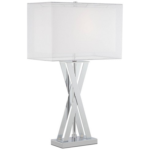 Possini Euro Design Modern Table Lamp Chrome Metal X Shaped Base