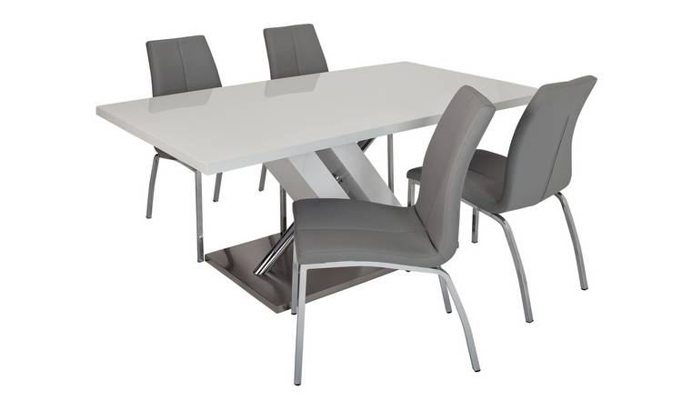 Buy Argos Home Belvoir White Gloss Dining Table 4 Grey Chairs